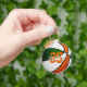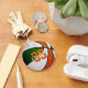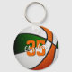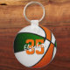 Esta cadena de claves temática de baloncesto fácil de personalizar presenta la imagen realista de un baloncesto que tiene paneles de color verde, blanco y naranja alternados en la parte delantera y una forma sencilla de baloncesto verde en la parte posterior - fácilmente personalizable con el nombre del jugador y el número jersey en la parte delantera y el nombre de la escuela o club y mascota en la parte posterior - por katz_d_zynes
