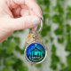 Natividad Escena en azul simple, verde y negro con texto blanco para usted a estrellas personalizares y blancas. Anillo de llave redonda.