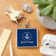 Nautical Bote Name Anchor Rope Navy Blue Square Keychain
