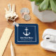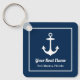 El keychain cuadrado nautical presenta un diseño sencillo y elegante de estilo costero azul marino y blanco con acento de ancla de barco. Personalice el texto del personalizado con el nombre de su barco junto con su ubicación, ciudad y estado.