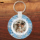 Navidades Copos de nieve azules y blancos, Anillo de claves personalizado Esta anillo de claves redonda presenta un impresionante diseño de copos de nieve azul y blanco que añade un toque de elegancia a cualquier cadena de teclas, personalizar con la foto elegida para crear un toque único y personal. Perfecto para regalar y conservar Recuerdos, hace un regalo atento o una adición especial a su propia colección.