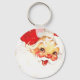 Un llavero con una imagen vintage de una cara retro santa claus. Feliz y alegre con mejillas redondeadas de color rosa.