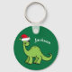 Impresionante dinosaurio verde sonriendo y luciendo muy lindo en un gorra de vacaciones de Santa Claus rojo. Personalizar este adorable regalo de cadena de Navidades infantiles con el nombre del destinatario para hacerlo aún más personalizado. Niño de Guay presente para un niño.