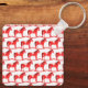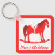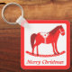 Esta divertida cadena de Navidades de doble cara presenta una imagen de arte digital de un lindo caballo balancín de estilo escandinavo. El caballo es rojo con un mané rojo oscuro, cola y pezuñas. El caballo amistoso sonríe. Tiene una silla blanca y riendas con motivos folclóricos escandinavos bonitos en la silla, incluyendo el sol, la luna y las estrellas y los corazones y flores. La base del mecedor es roja y está cubierta de hojas blancas de bonito. El diseño se inspiró en el caballo Dala sueco. Hay texto personalizado para que puedas personalizar este diseño con tu propio mensaje.