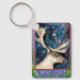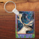 Ilustracion Vintage Diseño navideño Feliz con reno en un bosque rodeado de estrellas por la noche. El North Star brilla en el cielo con árboles en el fondo. Espera pacientemente a que Santa Claus lo necesite para que se ponga el trineo en Navidades.