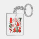 Los Navidades retro Holly Jolly Vibes trendy Holidays Keychain incluye el texto "Holly Jolly Vibes" en un guión retro en rojo, verde y rosado, con estrellas y caras adorables y alegres. Diseñado por ©Evco Holidays www.zazzle.com/store/evcoholidays