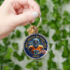 This cool customized navy blue blue high school football player photo keychain features gold typography of your team and player name. Personalize with your athlete name next to the ball.