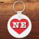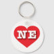 Este llavero presenta un vibrante corazón rojo que contiene las letras negrita, blanca y alta del funda NE, la abreviatura oficial del estado de Nebraska, el estado de la cascarilla.