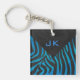 Llavero Negro cebra y azul con monograma