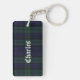 Llavero elegante hecho en el modelo negro escocés azul y verde de la tela escocesa de tartán del reloj. El texto blanco intrépido del estilo del Viejo Mundo, en el frente y la parte posterior, está listo para personalizar para sí mismo o como gran idea para un regalo.
