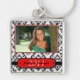 Este llavero superior cuadrado de la foto de la graduación tiene un fondo blanco y negro del damasco. En el frente, usted puede añadir su propia fotografía, y personaliza el nombre y el año de graduación.