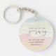 La cadena de claves personalizada "Find Joy in the Journey" representa un diseño de acuarela paisajista abstracto con colores azul pálido, crema y rosa. Presenta una Biblia motivadora Verse Nehemiah 8:10, "La alegría del SEÑOR es tu FUERZA". Personalizar la parte posterior con un nombre o detalles de su elección.