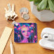 Entrar en un mundo de ensueño brillante con este retrato surrealista de neón de una diosa celestial. Bañada en tonos rosados, azul eléctrico y amarillo brillante, esta obra de arte combina belleza etérea con fantasía psicodélica.