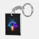 Luciérnagas mecánicas antiguas con bombilla de luz y finas alas brillan naranja, violeta, turquesa sobre fondo negro. Estilo Steampunk.