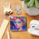 Un impresionante retrato surrealista de fantasía de una mujer radiante adornada con brillantes gafas pastel y una corona de flores de neón y fruta. Enfrentada a un paisaje floral cósmico con mariposas flotantes, esta obra de arte digital rebosa de color, magia y energía femenina.