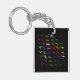 Colorido anillo de llave acrílica con dinosaurios arcoiris. Psicodelia prehistórica con t rex, triceratops, pterodáctilo, gallimimus y diplodocumentos.
