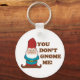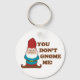 Un lindo gnomo con el divertido juego de palabras "No me jodas". Gorra rojo, camisa azul, zapatos marrones.