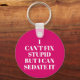 La cadena de teclas de botón redondo presenta el texto "No puedo arreglar lo estúpido, pero puedo sedarlo" en un fondo rosado caliente o cualquier color que elija, perfecto para un paramédico, enfermera o médica. Las cadenas de claves hacen regalos divertidos para la familia y los amigos o crean para uno mismo.