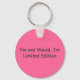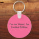 Cadena de claves con fondo rosa y texto negro que dice: "No soy raro, soy edición limitada".