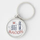 Cadena de claves de Texas para amantes del tocino con un aspecto occidental antiguo. Gráfico rojo y azul de una estrella solitaria, un contorno de Texas y una tira de tocino. Graciosa cita de tocino de Houston a El Paso.