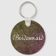 Esta es la cadena de claves personalizada de la dama de honor purpurina púrpura. Purpurina de oro falso Elegante diseño de logo con iniciales de letras monocromáticas. Es una idea de regalo vintage para una novia elegante, chicas de flores, dama de honor y dama de honor en la elegante ducha de boda o de novia.