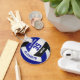 Esta cadena de claves con temática de voleibol deportivo presenta un aspecto realista del voleibol real azul, negro y blanco sobre el que se puede personalizar el nombre del jugador y el número de camiseta más el nombre de la escuela o club y el nombre de la mascota en un tipo de letra de letra varsity - de katz_d_zynes