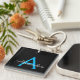Cadena de teclas de nombre de monograma simple de script negro y azul. Esto hace que el dulce perfecto cumpleaños 16, boda, ducha de novia, aniversario, ducha de bebé o fiesta de soltera sea regalo para alguien que ama el lujo glam y los estilos de moda.