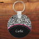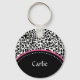 Una cadena de teclas personalizada de impresión de leopardo en blanco y negro con una banda curva rosa y caliente a la que puedes añadir tu nombre.