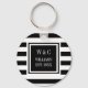 Elegante cadena de teclas monograma personalizada con iniciales personalizadas con un patrón rayado en blanco y negro con sus iniciales y nombre de familia con su fecha establecida en un cuadrado bordeado de negro con un texto blanco clásico. Diseñado por Thisisnotme©