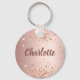 Llavero Nombre de monograma del purpurina de oro Rosa polv