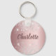 Llavero Nombre de monograma del purpurina de plata rosa Ru