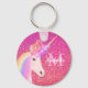 Cadena de teclas de nombre de Purpurina rosa de Moda corta Rainbow Unicorn. Está diseñada con un fondo purpurina falso rosa brillante y un unicornio blanco con pelo arcoiris pastel y flores sobre su cabeza. El monograma y el nombre están en el lado derecho del unicornio. Hace una gran idea de regalo para un amante del unicornio. Haga clic en la opción de personalización y siga las instrucciones.