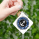 Una cadena de claves metalizado cuadrada de dos lados con temática náutica. En la parte delantera está su nombre personalizado, nombre del barco u otro texto y el rango del capitán u otro título que desee. En la parte delantera también hay un ancla de barco de diseño personalizado con cuerda y estrellas en azul marino clásico, negro y blanco. En la parte trasera se muestra tu foto personal. Este llavero es un gran regalo para cualquier ocasión.