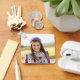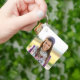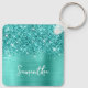 Reemplace la imagen de ejemplo en la parte delantera con su propia foto familiar. En el reverso, puede personalizar el guión moderno de estilo manuscrito para crear su propia cadena de claves personalizada. Agregue un primer monograma detrás del nombre para crear su propia combinación inicial de nombre. Girly glam falsa imagen azul verde azulada purpurina y turquesa falsa imagen de arte digital de Relieve metalizado que imprime como una foto en su regalo.