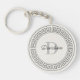 Esta cadena de teclas acrílicas combina durabilidad con estilo, con un monograma en gris oscuro enmarcado por un agradable borde de serpentín griego. Con un fondo blanco roto, es una pieza única y elegante para uso diario. Un regalo ideal para aquellos que valoran los toques personales, esta cadena de claves es perfecta para cumpleaños, relojes de casa o como accesorio diario de reflexión.