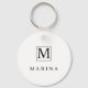 Una cadena Keychain personalizada y elegante, con colores en blanco y negro, con su nombre y su inicial. Ahora puede personalizar para poder añadir su nombre inicial y su nombre a ambos lados del producto. Esto representa un elegante regalo personalizado a tus amigos o a los que amas.