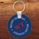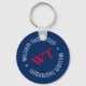 Una cadena de claves azul simple y elegante personalizada con su propio nombre e iniciales