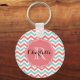 Llavero Nombre personalizado de Chevron Coral y Aqua