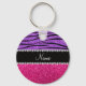 Llavero Nombre personalizado purpurina rosa banda de cebra