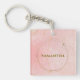 Llavero Nombre personalizado rosa y cuadrado dorado