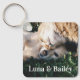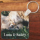 Esta adorable cadena de claves mascota muestra su foto favorita de sus mascotas con sus nombres escritos a continuación en un clásico y simple tipo blanco. ¡El recuerdo perfecto para los dueños de perros y gatos!