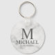 Regalos Groomsman personalizados modernos en blanco y negro con monograma personalizado, nombre y título de groomsman en estilo serif gris clásico sobre fondo de mármol blanco. También perfecto para el Mejor Hombre, Padre de la Novia y más. Los detalles de mármol se simulan en las obras de arte. Este producto no será fabricado con mármol real.