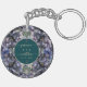 Un llavero acrílico audaz y sofisticado que presenta ilustraciones florales dramáticas en azul polvoriento y gris sobre un fondo negro intenso. La tipografía blanca crujiente y la disposición clásica establecen un tono elegante y melancólico. Perfecto para una velada formal o una boda sofisticada.