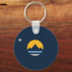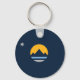 Cadena de claves con la nueva bandera de la ciudad de Reno, Nevada; bandera azul oscuro con sol amarillo y montañas azules en el centro