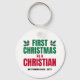 Elegante primera NAVIDAD como cadena de claves CRISTIANA de nuevo creyente con TEXTO Y FECHA PERSONALIZABLE. El diseño muestra Navidades verdes y Navidades rojos negrita sans serif tipografía con elementos rojos y verdes sans. Un gran hilo musical para un nuevo creyente cristiano. Puedes PERSONALIZAR EL TEXTO con tu nombre, verso de la Biblia favorito u otro texto y año (o borrar). Ideal como mercadería de Navidades de iglesia para nuevos creyentes que celebran a sus primeros Navidades cristianos. Estos pueden ser obsequios de medias y regalos de favor. Hay regalos coincidentes disponibles.
