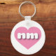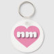 Este llavero presenta un vibrante corazón rosado que contiene las letras negrita, blanca, redondeadas de funda inferior nm, una abreviatura juguetona para Nuevo México, la tierra del encanto.