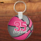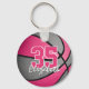 Esta linda cadena de claves personalizada de baloncesto para chicas presenta la imagen realista de un baloncesto que ha coloreado paneles rosas y grises alternados - personalizar fácilmente la cadena de teclas con el nombre del jugador en un tipo de letra con firma (o autógrafo) encima del número de camiseta del jugador (en un tipo de letra con estilo de letra varsity) - por katz_d_zynes