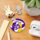 Este llavero de voleibol de color púrpura, amarillo y blanco presenta un voleibol tricolor sobre el que se puede personalizar el nombre del jugador y el número de camiseta - de katz_d_zynes