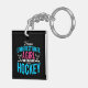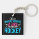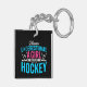 El texto de rosa caliente, azul brillante y blanco con pollas de hockey y palos de hockey dice Nunca subestimar a un Chica que juega al hockey, ¡genial para el jugador de hockey de todas las edades que ama el deporte!