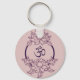 Bonito de llave morada con flores y símbolo om. Póngalo en sus llaves para traer buenas vibraciones con usted en movimiento.